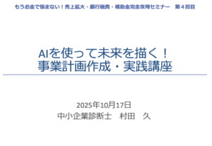 この記事では、セミナーでお伝えした「変化の時代を乗り越える経営計画の立て方」と「小規模事業者持続化補助金の活用法」を詳しくご紹介します。