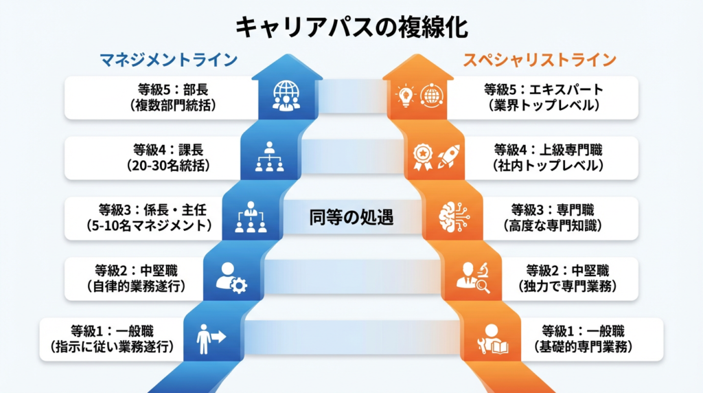 「なんとなく頑張れ」ではなく、「次の等級に上がるためには、プロジェクトマネジメントスキルとリーダーシップを身につける必要がある」と具体的に伝えられるのです。